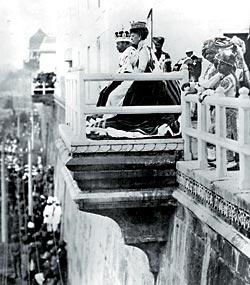 Георг V и его супруга королева Мария во время коронационного визита в Индию. Красный форт, Дели. 12 декабря 1911 года