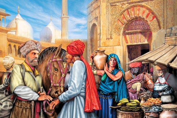 И вот сюда судьба занесла Афанасия. Сойдя по деревянному трапу на индийский берег, он огляделся. В причудливой и многоязыкой толпе, какая, впрочем, наполняет улицы любого портового города, лиц с песьими головами и о трех ногах не было видно. Однако жители неприятно поразили купца тем, что «простые люди все ходят нагие, а голова не покрыта, а груди голы», и вообще «из простого народа мужчины и женщины все нагие да все черные». Сам диковинный путешественник тоже привлек к себе всеобщее внимание: «Куда я ни иду, за мной людей много – дивятся белому человеку». Впрочем, в Чауле он не задержался, а с караваном отправился через небольшие селения Пали и Умри в богатый город Джуннар, стоящий «на скале каменной, не укреплен ничем, Богом огражден». Здесь Афанасий «зимовал» два месяца, живя на постоялом дворе. И тут случилась с ним новая беда – местный правитель Асад-хан отобрал у него жеребца и сказал: «И жеребца верну, и тысячу золотых в придачу дам, только перейди в веру нашу… А не перейдешь в веру нашу, и жеребца возьму, и тысячу золотых с твоей головы возьму». И срок назначил – четыре дня, на Спасов день, на Успенский пост…» Лишь заступничество некоего «казначея Мухаммеда» помогло купцу вернуть коня и избежать насильственного обращения в ислам.
