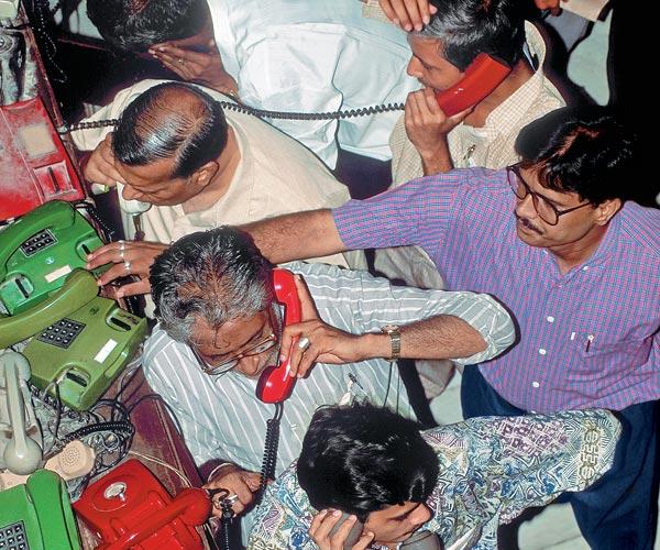Калькуттская биржа образца 1990-х. Сегодня там телефонов не увидишь, да и брокерам совсем не обязательно находиться в общем зале. Они сидят в своих конторах и на экранах компьютеров видят все, что происходит на рынке. Фото: MARK HENLEY/PANOS PICTURES/AGENCY.PHOTORAPHER.RU