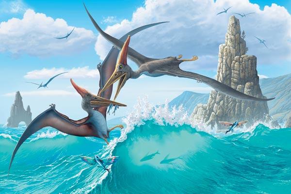 Сегодня известно, что птерозавры были высокоорганизованными и очень разнообразными животными, господствовавшими в воздухе большую часть мезозойской эры. Почему же количество их видов сокращалось на протяжении мелового периода? Одна из возможных причин – конкуренция с птицами, которые в то время уже были многочисленны. Из 16 семейств птерозавров осталось только одно, состоящее из настоящих гигантов. Они планировали над прибрежными водами океанов и морей в особо благоприятных погодных условиях. Реальную конкуренцию в воздухе им могли составить только крупные океанические птицы, но время их еще не пришло – эти птицы появились спустя миллионы лет после исчезновения последних птерозавров. Гигантов погубили не птицы, а узкие рамки их образа жизни. Глобальное похолодание климата 65 миллионов лет назад привело к резкому ухудшению погодных условий, возникновению частых штормов, ливней, сокращению теплых восходящих потоков воздуха над океаном. Последние птерозавры оказались слишком уязвимыми для таких изменений и исчезли.