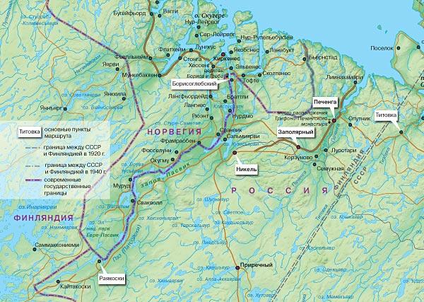 История этой границы есть собственно история ее постепенного сдвижения на восток. С X до середины XI века она, судя по глухим отзвукам в истории, проходила гораздо западнее – по Люнгенфьорду, в 50 километрах восточнее современного города Тромсё. Потом, в 1043 году, Ярослав Мудрый дал в качестве приданого за дочерью Елизаветой, невестой норвежского короля, землю оттуда вплоть до Альта-фьорда и реки Альта. Проходит еще 200 лет, и на новые уступки идет новгородский князь Александр Невский – уступает следующий выступ территории до Тана-фьорда. Меж тем и Норвегия, и Новгород попадают под власть более сильных соседей – первая с 1397 года входит в Кальмарскую унию с Данией, второй уходит под тяжелую руку Москвы. В 1603 году Борис Годунов и Кристиан IV договариваются уже о новой границе – между Тана-фьордом и Кольской губой по Варангер-фьорду и реке Няндоме (Нейден). Впрочем, из-за смерти русского царя и наступившего Смутного времени договор тогда не был подписан, а вступил в силу только в 1684-м, причем на новых условиях. А именно – все спорные земли были превращены в Фэлледсдистрикт (Общий район), где обе державы имели право в равных долях собирать дань с саамов. Так они поступали ровно 130 лет, пока в 1814-м Норвегия не перешла от Дании к Швеции. Некоторое время продолжалась неопределенность, и наконец в 1826-м произошла официальная демаркация – по рекам Паз и Ворьема. В 1905 году стортинг (парламент) Норвегии провозгласил в Осло независимость, и Российская империя первой признала ее. Территориальный вопрос при этом не поднимался. Это уже потом, после 1917-го, в дело вмешался новый региональный игрок – также получившая суверенитет Финляндия. По договору 1920 года территория от границы 1826 года на восток до реки Титовки и середины Среднего и Рыбачьего передавалась ей в вечное владение. Потом по результатам Советско-финляндской войны 1939—1940 годов это «вечное владение» было «округлено» в пользу СССР (полуострова отошли к нам полностью). Наконец, в 1944 году наша страна вновь обрела границу с Норвегией – ровно по линии 1826 года.