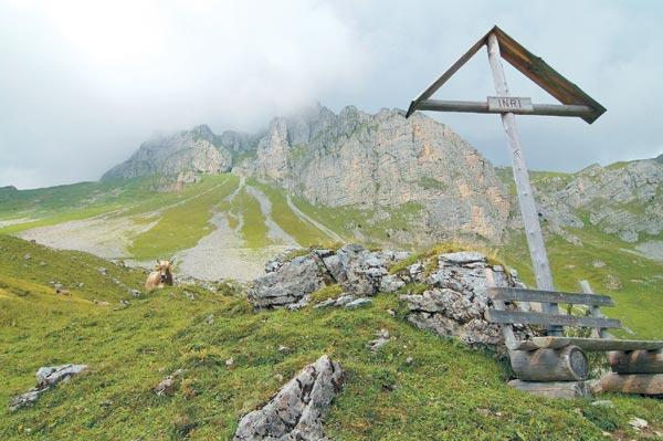 Тропа Багратиона петляла среди альпийских лугов, усеянных цветами. В ушах все время стоял звон ботал – колоколов на шеях у бесчисленных коров, пасущихся на склонах. Временами ухоженные белые буренки выстраивались вереницей на тропе и дисциплинированно шли до следующего луга. Глядя на них, мы попытались представить, как выглядел караван суворовских мулов. С самими мулами нам так же не повезло, как и фельдмаршалу. За неделю в Альпах ни один на глаза не попался, хотя встречались завезенные сюда яки и даже экзотические ламы.