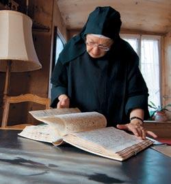 Настоятельница монастыря Святого Иосифа в Муотатале Моника Гвердер показывает дневник монахини Вальбурги, где речь идет о «генерале Сульверо» и его армии