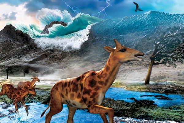 Жорж Кювье первопричиной глобальных вымираний считал морские потопы, но эта гипотеза современными геологами не подтвердилась. Чтобы затопить всю сушу, кроме высоких гор, и уничтожить большую часть наземных обитателей, необходимы по крайней мере два условия: повышение уровня Мирового океана на сотни метров и быстротечность события. В наше время, когда средняя высота континентов над уровнем моря составляет 670 метров, надо чтобы объем Мирового океана увеличился почти в два раза. Такое событие никогда в земной истории не случалось и ввиду отсутствия подобных запасов свободной воды вряд ли возможно в будущем. Два основных явления регулируют уровень Мирового океана – изменение площади материковых ледников и срединноокеанических хребтов (высоких горных цепей, расположенных в центральных частях всех океанов). Разрастание ледников, вбирающих в себя огромные массы воды, и сжимание срединно-океанических хребтов приводят к тому, что океаны и моря отступают, осушая громадные территории шельфа. Обратные процессы – таяние ледников и разрастание сети подводных гор, выталкивающих водные массы из чаши океана, способствуют повышению уровня Мирового океана. Совпадение этих двух факторов может вызвать очень существенный подъем моря, как это случилось в середине мелового периода, примерно 90 миллионов лет назад. По последним оценкам, тогда уровень Мирового океана поднялся на 250 метров, затопив обширные участки суши. Однако считать это повышение катастрофическим потопом мешает большая длительность события – миллионы лет, именно столько идет рост подводных горных цепей. Океан наступает не спеша, отвоевывая у суши по миллиметру в год. К такому темпу животный мир успевает приспособиться, и быстрого массового вымирания не происходит.