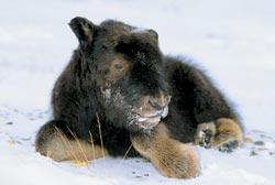 В конце апреля стада начинают распадаться: стельные матки покидают семью, чтобы родить. В это время полярная зима еще длится, и если погода стоит морозная, мокрый новорожденный может тут же погибнуть. Но если ему удается (при активной помощи матери) обсушить шкурку, то уже через час он кое-как следует за матерью. А недели через две он ходит и бегает не хуже взрослых, с недельного возраста пробует на вкус взрослую еду. Но еще 4—5 месяцев теленок будет время от времени припадать к материнскому соску, год – ходить за матерью, а совсем взрослым станет только к трем-четырем годам.