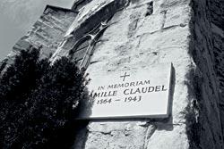 Памятная доска в честь Камиллы Клодель на стене церкви в Вильнёве. Фото: PHOTAS
