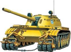 Колейный минный трал КМТ-5 на танке Т-55 (установлены только катковые секции и цепь для траления штыревых противоднищевых мин), СССР/Россия. Масса одной катковой секции 2 265 кг. Средняя скорость траления 8—12 км/ч. Могли крепиться также две ножевые секции и кассета для установки пиротехнических сигналов, обозначавших проход в минном поле
