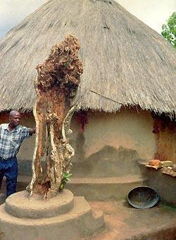 В краале нашим гидом был все тот же Виктор. Он показал нам символ королевской власти – барабаны, священное дерево, а также спальную хижину королевы.
