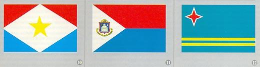 Современный флаг Нидерландских Антил принят в 1986 году и употребляется только вместе с нидерландским флагом. Синяя полоса обозначает Карибское море, а белые звезды на ней – пять островов, входящих в состав страны, Верхние звездочки – это Саба, Сен-Мартен и Синт-Эстатиус, нижние– Кюрасао и Бонайре. Красная же полоса символизирует единство всех островов. Совпадение цветов флага с цветами флага Нидерландов призвано подчеркнуть связь страны с метрополией. В 1959 – 1985 годах на флаге была и шестая звезда, обозначавшая Арубу.