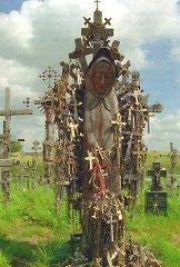 В Литве, в двенадцати километрах от города Шауляй, на шоссе Шауляй – Рига сложился своего рода заповедник духа. Это уникальное место на земле – Гора Крестов. Она не выше трехэтажного дома и размером с футбольное поле. Это не кладбище, здесь никто не похоронен, но вся гора словно проросла крестами. Это – памятные и обетные кресты – их десятки тысяч! Их ставят в память об убитых на войне, о замученных и погибших в лагерях, о пропавших без вести и – с просьбой о помиловании заключенных, о выздоровлении, о благополучии семьи; ставят кресты и в память о событиях счастливых. Кресты и знаки, столбы, каплицы (католические часовни – А.Ф.), скульптуры, распятия, иконы, картины на темы священной истории, но, пожалуй, самое потрясающее – это бессчетное количество крестиков, иконок, четок, которыми увешаны кресты большие. Их оставляет каждый, кто приходит в этот храм под открытым небом.