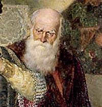 Князь Михаил Черниговский.В ответ на мольбы Бориса Ростовского он только что произнес: «Не хочу на словах именоваться христианином, а на деле быть поганым». Левая рука Михаила прижимает к груди крест в знак того, что он непоколебим в своем решении принять смерть за веру.