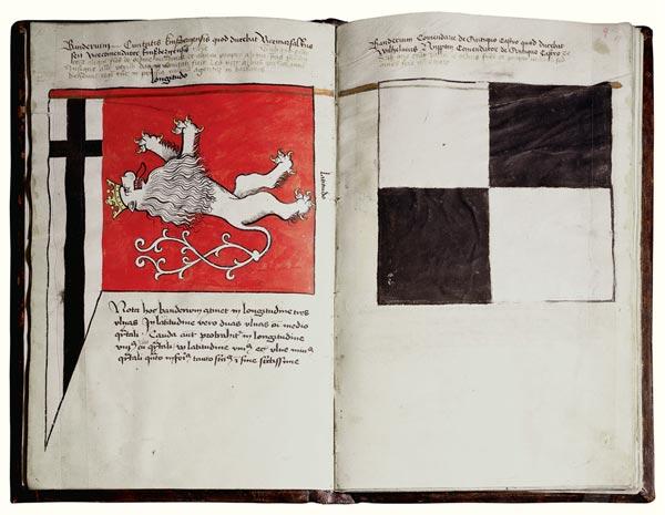Знамена Тевтонского ордена, доставшиеся победителям под Грюнвальдом. Миниатюра Станислава Дуринка к «Истории Польши» Яна Длугоша (рукопись Banderia Prutenorum, 1448 год). Фото.: AKG/EAST NEWS