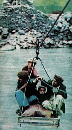 С первых же шагов нам пришлось убедиться в правоте слов тех, кто предупреждал нас о трудной и опасной дороге в калашские долины. Унылая пыльная равнина Аюн сменилась каменистыми отрогами гор. Серые, только где-то высоко-высоко осыпанные сахаристой белизной, громады скал сталкивались друг с другом. Это были чужие и чуждые горы. Они устремляли свои гигантские каменные пальцы в холодную синь неба, откуда веяло резкой остротой морозного воздуха.