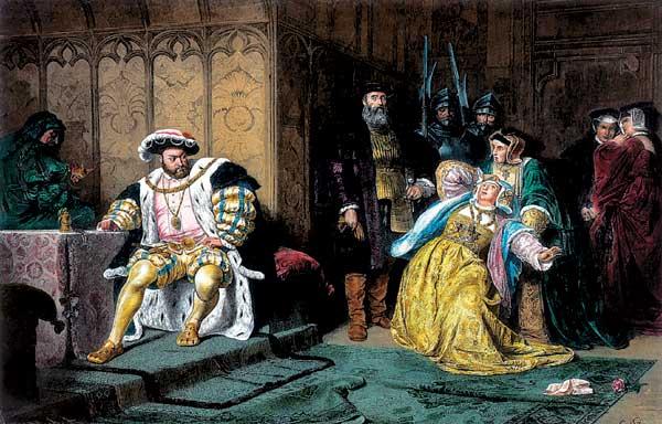 Генрих VIII обвиняет Анну в измене. Гравюра с картины К. Пилоти. 1880 год