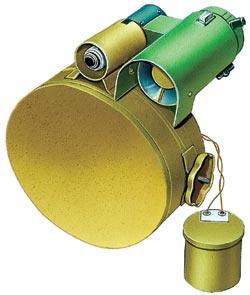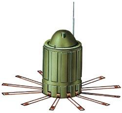 Противоднищевая мина АТ-2 (DM1233), Германия. Корпус металлический, масса мины – 2,3 кг, заряда ВВ – 0,8 кг. Установка минным заградителем, НУР систем залпового огня
