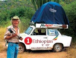 С Рольфом Беккером , седым веселым человеком с хитрыми глазами, я познакомился на автосалоне в Лейпциге. Тогда он эпатировал публику своим национальным костюмом и культовым автомобилем социалистической Германии – «Трабантом». Это был настоящий народный автомобиль, хотя ожидать права на его приобретение приходилось порой по 15 лет. Рольф, впрочем, знал хитрые обходные пути и мог устроить двухтактную двухцилиндровую пластмассовую «тачку» месяца за три. Но прославился он не этим, а игрой на шарманке: его мировой рекорд 48-часового непрерывного вращения ручки до сих пор не побит! И это лишь один из 12 мировых рекордов, большинство из которых связано уже с любимым автомобилем. Его «трабанты» совершали самые длинные прыжки, самые долгие поездки на двух колесах, знаменитый дизайнер Колани создавал для них самые умопомрачительные тюнинг-версии. «Трабанты» Рольфа видели уже на всех континентах: в Америке, которую он пересек от Голливуда до Нью-Йорка и где знаменитый автомобиль в конце концов угнали, на Шри-Ланке, в Бразилии, Иране, Австралии. Рольф – единственный водитель «Трабанта», посетивший все континенты. Если будете искать подробности в Интернете, просто наберите в поисковиках псевдоним D-Rolf, он происходит от немецких слов Deutschland (Германия) и Drehorgel (шарманка). Ну а меня заинтересовало сообщение Рольфа о его дважды юбилейном автопробеге через Африку, предпринятом в январе нынешнего года. Дважды – потому что удивительным образом совпали столетие начала героического путешествия оберлейтенанта Гретца и 50-летие с момента появления «Трабанта». Конечно же, именно «Трабант» и повторял некогда непроходимый маршрут!