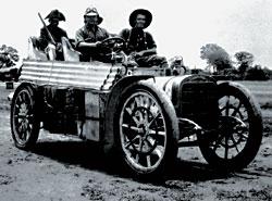 И все же идея необычного тура настолько захватила Фридриха, что он даже вышел в отставку, приобрел автомобиль и 10 августа 1907 года стартовал с двумя спутниками из Дар-эс-Салама. Хорошая авантюрная нотка: некоторые запасные части, бензин, шины были заблаговременно развезены на волах по предполагаемому маршруту и замаскированы под… могилу самого Гретца. Автомобиль герра оберлейтенанта, собранный в Гаггенау (теперь там строят Unimog) по его эскизам, был довольно прост: никакой электрики, карбидные фары, бак на 400 литров, деревянные колеса. Притом почти 50 лошадиных сил в цилиндрах. Впереди лежало около 10 000 километров такого бездорожья (а по прямой проехать было вообще невозможно), что скорость редко превышала 30 км/ч. Да к тому же не все запчасти, которые потребовались в дороге, удалось захватить с собой или спрятать на маршруте. Например, уже через тысячу километров при преодолении вброд речки холодная вода, попавшая на перегретый мотор, расколола один из цилиндров пополам. Пришлось сделать долгий трехмесячный привал в ожидании водителя, уехавшего в Германию за новым цилиндром, но попавшего там на больничную койку с африканской лихорадкой.