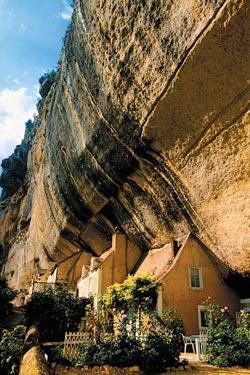 Троглодитская деревня, притаившаяся под склоном горы в долине реки Везер в Дордони. В отличие от большинства французских пещерных поселений, она по-прежнему обитаема. Фото: EYEDEA/EAST NEWS.