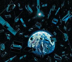 В околоземном пространстве движется около 10 тысяч спутников и не меньшее число их фрагментов. В основном они сконцентрированы на малых высотах и вблизи гео стационарной орбиты, «парковочные места» на которой уже приходится тщательно распределять. Фото: CHEEJU.FILES.WORDPRESS.COM