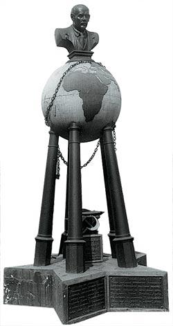 Нередко основанием памятника становились «скрижали» основоположников марксизма. Так, в поселке Вознесенье Подпорожского района Ленинградской области постамент для бюста Ленина был выполнен в виде небольшой библиотеки начинающего марксиста: внизу трехтомный «Капитал» Маркса, на нем несколько томов из собрания сочинений самого Ленина. Еще более наглядно эта тема была раскрыта в памятнике Ленину, созданном в Нижнем Тагиле по проекту учителя рисования местной школы А. Фролова. Фигура Ленина там была установлена на мраморный земной шар – символ всемирного значения Ленина. Земной шар, в свою очередь, покоился на конусообразном многограннике, образованном из развернутых книг с изречениями Ленина. Называлась эта замечательная композиция «Ленин жив в заветах». Другой художник-самоучка, мастер литейного цеха Одесского судоремонтного завода им. Марти, Федотов, также водрузил бюст Ленина на земной шар, опутанный цепями капитала (намек на грядущую мировую революцию). Земной шар опирался на пять символических фабричных труб, установленных на стилобате в форме пятиконечной звезды. В центре звезды, между опорами-трубами, стояла наковальня с серпом и молотом.