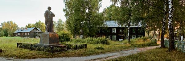 Памятник Ленину на улице Горького в поселке Туголесский Бор (Шатурский район Московской области). Рядом, на Клубной улице, расположилась скульп турная группа – Ленин и Горький