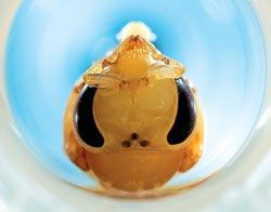 Куколка медоносной пчелы, выращенная в пробирке «Эппендорф» (емкости для центрифугирования). Пчелы тоже попали в число лабораторных животных – на них исследуют, в частности, физиологию памяти и механизмы обоняния. Фото: HEIDI&HAUS-JURGEN KOCH/ANIMAL-AFFAIRS/FOTOLINK