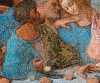 Петр, привстав, спрашивает Иоанна: кого, по его мнению, Учитель имеет в виду (это трактовка самого Леонардо). Его переполняют гнев и скорбь, и как человек действия Петр сжимает в правой руке нож, чтобы покарать отступника. Этим ножом он потом отсечет ухо одному из стражников, пришедших арестовать Христа.