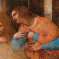 Иаков Старшийв ужасе развел руки. Он столь же пылок, как и Петр, но Леонардо хочет показать, что эмоции его героя выливаются не в действие, а во внутренний крик.