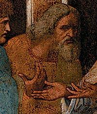 Симон.Самый рассудительный из апостолов. Его руки как бы говорят: «Такого не может быть» – реакция, по мнению исследователей, сходная с реакцией Андрея, но более сдержанная, идущая от разума, а не от чувства.