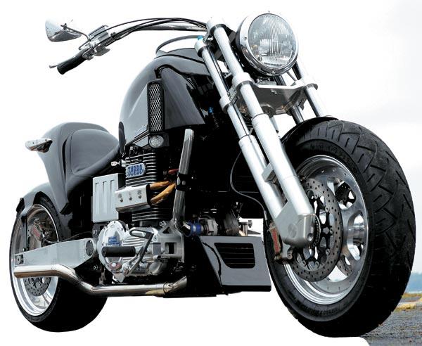 По уровню вибраций новый двухвальный мотор оказался сравним с 4—6-цилиндровым двигателем обычной конструкции. Больше того, симметрия сил, воздействующих на поршень, привела не только к исчезновению тряски, но и к снижению потерь: мотор Neander экономичнее обычного дизеля на 12%! На свет появилось целое семейство двигателей от одноцилиндрового объемом 400 кубиков и мощностью 25 л. с. и до 2,5-литрового 3-цилиндрового «монстра» мощностью двести «лошадок». А чтобы продемонстрировать впечатляющие возможности новой технологии, было решено создать дочернюю фирму Neander Motorcycles и поручить ей разработку дизельного мотоцикла. Он должен был стать первым в мире турбодизельным чоппером, доставляющим своему наезднику не только удовольствие, но и выделяющим его из толпы рядовых мотоциклистов, пусть даже и гоняющих на самых престижных байках, – но разве хоть один из них может похвастаться дизелем?