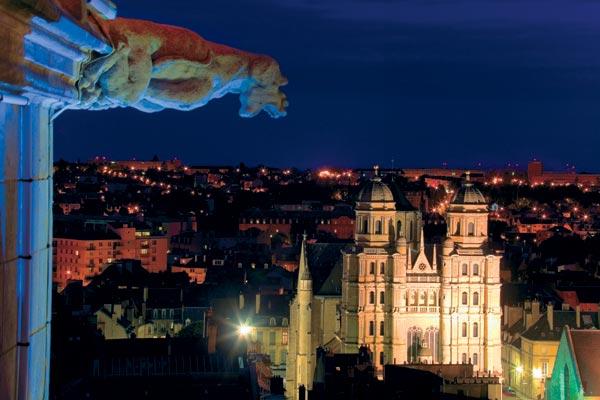 Однако горожане издавна отдавали предпочтение готическому собору Нотр-Дам, расположенному близ городского рынка и не имеющему никакого отношения к какой бы то ни было власти. Его строительство началось на месте одноименной часовни еще в 1220 году. Спустя тридцать лет собор уже стоял. Изначально, как это заведено в готике, его фасад украшали химеры – пока одна из них не свалилась на голову прихожанина. Легенда гласит, что это произошло на свадьбе местного ростовщика. Жених был убит на месте: так свершился суд Божий над «кровопийцей». Во всяком случае, должникам покойного наверняка хотелось в это верить. Возможно, опасаясь столь же скорой Божьей расправы, прочие зажиточные горожане потребовали от властей убрать опасные скульптуры. И их действительно убрали, оставив только пару. Те многочисленные химеры, которых мы видим сегодня, – гораздо более поздние. Их вернули на фасад в XIX веке по проекту архитектора Лагуля.