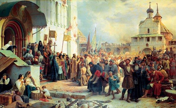 Осада Троице-Сергиева монастыря поляками продолжалась с сентября 1609 по январь 1611 года. (Картина Василия Верещагина «Защитники Троицы
