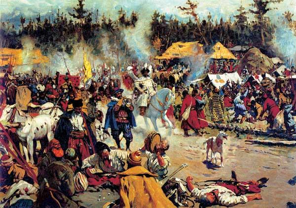 Лагерь Лжедмитрия II в Тушино. (Картина Сергея Иванова «В Смутное время