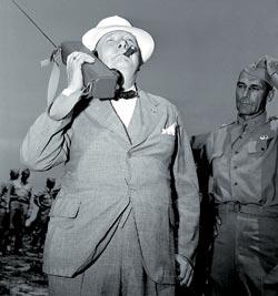 Уинстон Черчилль разговаривает по одному из первых «уоки-токи»