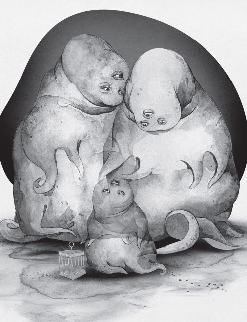 Соседи чуть помедлили и вползли в прихожую, оставив на коврике перед дверью влажный слизистый след. Полупрозрачные грушеподобные фигуры, два ряда щупалец – внизу и на уровне груди, три круглых глаза.