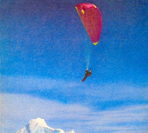 Мотор внезапно смолкает, и Карстен, как на парашюте, валится едва ли не к моим ногам. Лежит на снегу и не встает. «Сними так, – объясняет он через переводчика. – Вроде меня сбил воздушный поток, и я упал». Мы смеемся: мол, западной публике нужен не просто снимок летящего немецкого параплана над айсбергами в проливе ЗФИ, а еще какая-то сенсация. Оказалось, что Карстен срочно приземлился, потому что отморозил кончики пальцев.