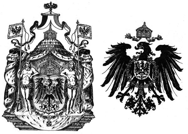 Возрождение одноглавого германского орла в качестве государственного символа связано с объединением Германии под властью прусских королей. С 1871 года одноглавый орел стал изображаться в центре герба вновь созданной Германской империи, но с прусским малым гербом на груди. Гербовый щит увенчивала императорская корона, окружали прусский орден Черного Орла и два мифологических лесных великана с гербовыми штандартами Пруссии и Бранденбурга. Все изображение помещалось на фоне мантии с короной, девизом «С нами бог» и хоругвью, В 1888 году в герб были внесены небольшие изменения.