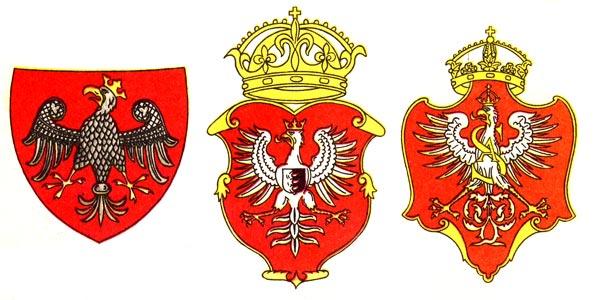 Изображение орла впервые появляется на монетах и печатях некоторых польских князей в конце XII —начале XIII века и постепенно становится гербом многих представителей первой польской королевской династии Пястов. В Великой (центральной) Польше орел-символ употреблялся без короны, в Малой (южной) Польше – с короной. Первое цветное изображение белого орла на красном щите относится к 1241 году. В 1295 году король Пшемысл II увенчал орла короной и сделал его официальной государственной эмблемой Польши. В XIV веке появляется и флаг, повторяющий рисунок герба.