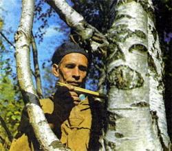 ...Снова и снова он ощупывал глазами дерево. Малорослая, с широкой, как зонт, раскидистой загущенной кроной; слегка искривленный со вздутиями ствол; утолщенный комель, с продольными извилистыми трещинами кора. Багаев погладил шершавый ствол дерева, помедлил немного, потом снял рюкзак, развязал тесьму, вынул топорик и сделал затес. Открылась древесина с темными узорчатыми вкраплениями. Береза была та самая, которую он бесконечно долго искал.
