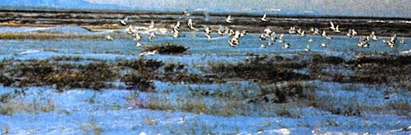 И вот днем, когда потекли через иззубренную цепочку дальних гор лучи солнца, в воздухе раздалось шипение, замельтешили белые крылья, черные веера хвостов, пахнуло в лицо теплым птичьим духом. Куропатки! Огромная стая, не меньше тысячи птиц. Они расселись на доме и вокруг, погалдели, попрыгали и умолкли.