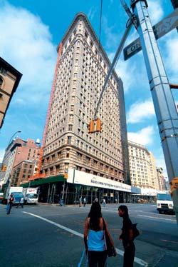 Но сами «коробки» небоскребов, конечно, с места не сдвинешь, и Магистраль по-прежнему может гордиться старейшим из них во всем Нью-Йорке: Ист-виллидж представляет здание Дэниэла Бурнэма, более известное как «Утюг» (Flatiron Building, 1902 год). В плане дом образует вытянутый треугольник, такая форма подсказана самим заданным пространством: пересекаясь по диагонали с Пятой авеню, Бродвей образует «клин». С точки зрения современного прохожего, ничего особенного в «Утюге» нет, разве что причудливо выглядит его заострение в сторону Мэдисон-сквер. Однако в 1900-е гигант прославился благодаря неслыханной высоте – целых 22 этажа! Художники и фотографы со всего мира стекались сюда, чтобы запечатлеть новый «символ» покорения человеком архитектурного пространства. А критики лишь подливали масла в огонь. Они уверяли, что треугольное здание вскоре разрушится, будучи подвержено из-за своей формы и размеров «более мощным порывам ветра»…