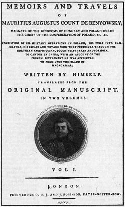Титульный лист первого английского издания мемуаров Бениовского.