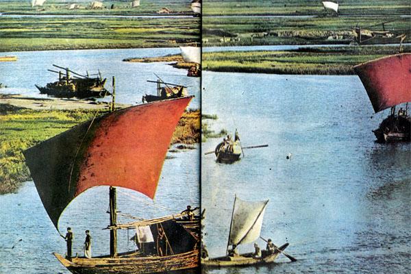 Река Мегхна широкая, но довольно мелкая. Сильный ветер легко вздыбливает водную массу. Рядом на пароме сгрудилась группа парней и девушек, наверное, студенты Даккского университета, их много разъехалось в эти дни по стране для оказания помощи пострадавшим районам. Им бы опыт наших студенческих отрядов! Но он будет и у них. А пока на перевернутой корзинке сидит девушка, на другой корзинке – ее небольшой музыкальный инструмент с клавишами. Внутри ящика – мехи. Рядом стоит второй музыкант – парень с двухструнной мандолиной-дотарой. Студенты поют «Салам мукти бахини» – о борцах за свободу. Мы уже узнали мелодию этой песни и тихонько подпеваем. Паром резко кренится, и девушка едва успевает подхватить свою «фисгармонию». Поднимаются волны, но студенты только крепче берутся за руки и еще громче поют. И даже секущий дождь не мешает им.