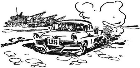 Так мы доехали до военного лагеря, который был недавно сооружен, перед которым я неожиданно увидел французские легкие танки типа АМХ-13; эти машины французы успешно использовали в Алжире. Очевидно, они только что прибыли сюда, потому что их кое-как успели замаскировать сетками. Меня также сбила с толку их окраска: как известно, французы, ведя колониальную войну в Северной Африке, соответственно к местным условиям маскировали свои военные машины, разрисовывая их пятнами серого, зеленого и коричневого цвета, а эти танки были желтыми.