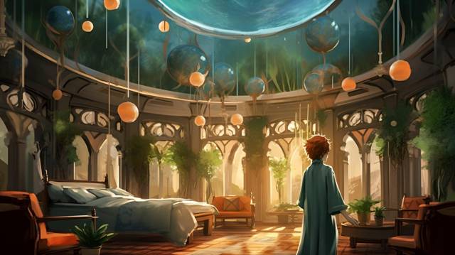 Потолок изображал ночное небо снаружи апартаментов. Только с добавлением дополнительных лун и без всяких негативных признаков вроде дождя, снега и тому подобного. И если бы не несколько лун, то я бы подумал, что у Джубы нет никакого потолка, а сам холл расположен под открытым небом. Плюс куча живой зелени свисала с потолка, что ещё больше усиливала эффект живости.