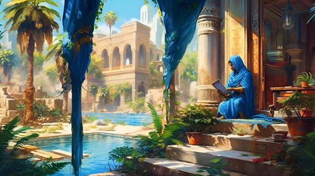 Сказать, что у Фаржута много места и апартаменты Джубы вообще ни о чём – ничего не сказать. Поместье этого чёрного мага напоминало маленький оазис внутри большого оазиса огромной пустыни. Здесь был мини-город. Эдакий Рахиратик. Пришлось на Ковре летать и искать этого вашего Фаржута. Благо, как только завернул за угол, увидел знакомого мужчину в синем облачении. Он сидел возле книжного домика и читал похожий пергамент-артефакт, как и у меня.