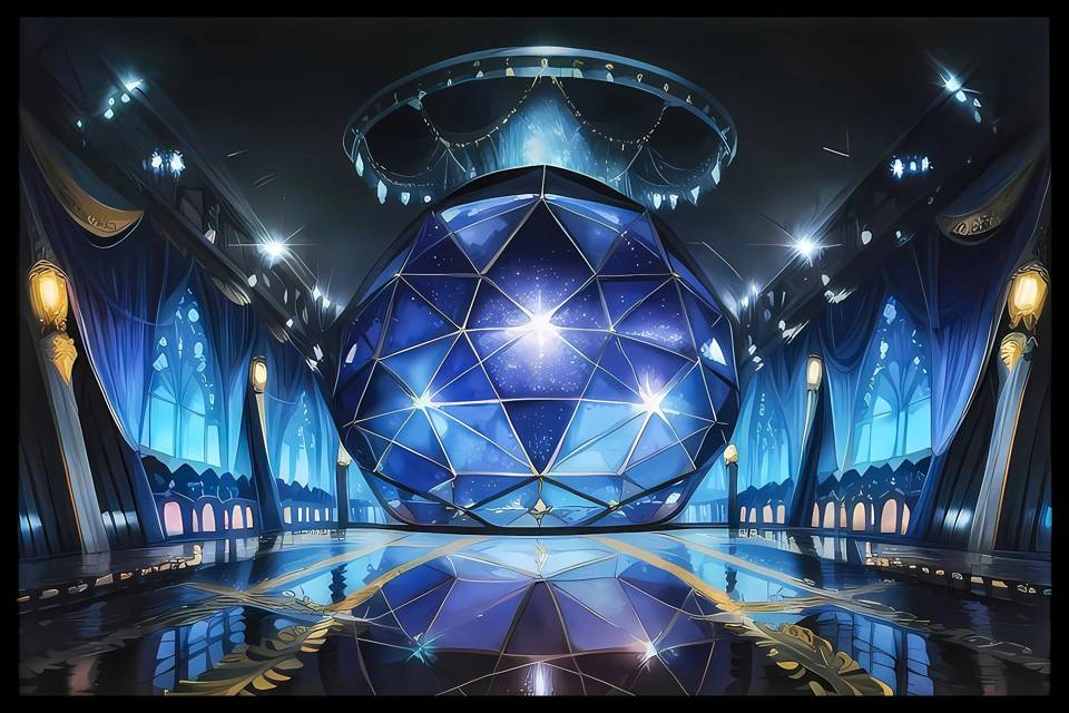 Синеющий коридор и вовсе меняется после первой успешной «миссии». Теперь это на са́мом деле не белый бесконечный коридор, а синий огромный зал, где на панорамных окнах проявляются синие бархатистые шторы с золотистым тиснением. А зеркальный пол отражает огромный синий шар неправильной формы, или лучше сказать некий «геоид».