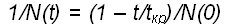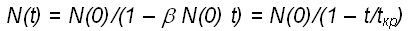 Действительно, на графике с отложенными по осям абсцисс и ординат величинами t и 1/N (см. рис. 2) соответствующие фактические точки практически точно ложатся на теоретическую прямую