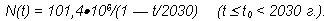 с параметрами tкр = 2030 г. и N(0) =101,4·106».