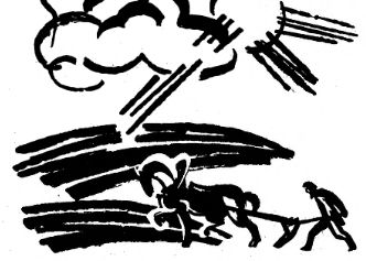 За. Москва-рекой зелен бархат Великого луга под легким небом в белых, в сизых облаках. По лугу лентой Москва-река вьется, озера на ней низаны, плывут тени от облаков, ветер ходит, трясет бобровые палки в воде, цветки на лугу.